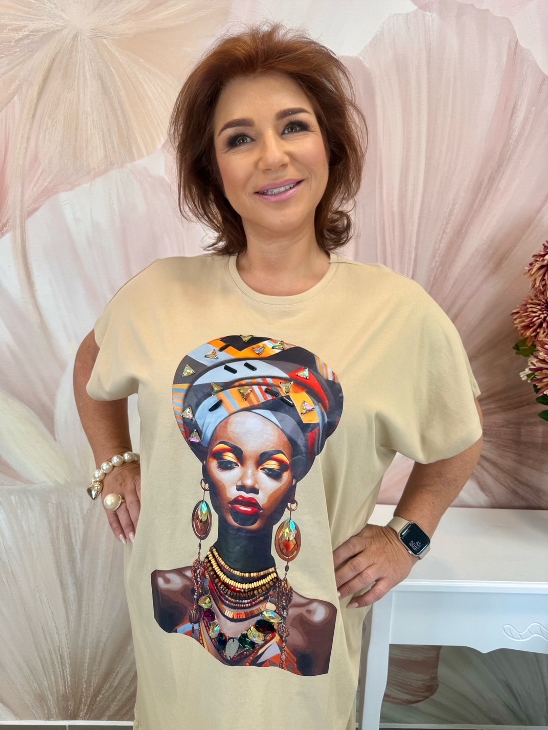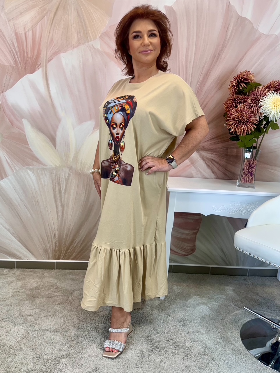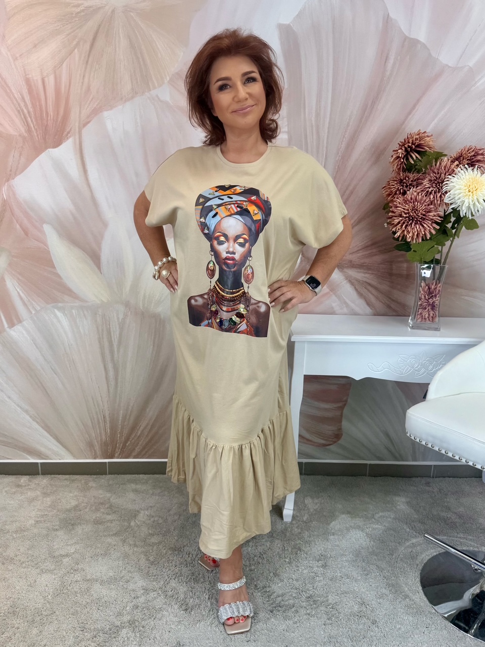 2025.05.29.Afrikai mintás bézs pamut nyári maxiruha