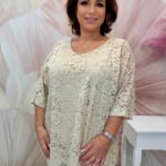 Hosszított bézs tunika ezüst és arany kristályokkal