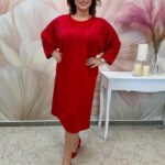 Piros elasztikus pamut ruha piros kristályokkal