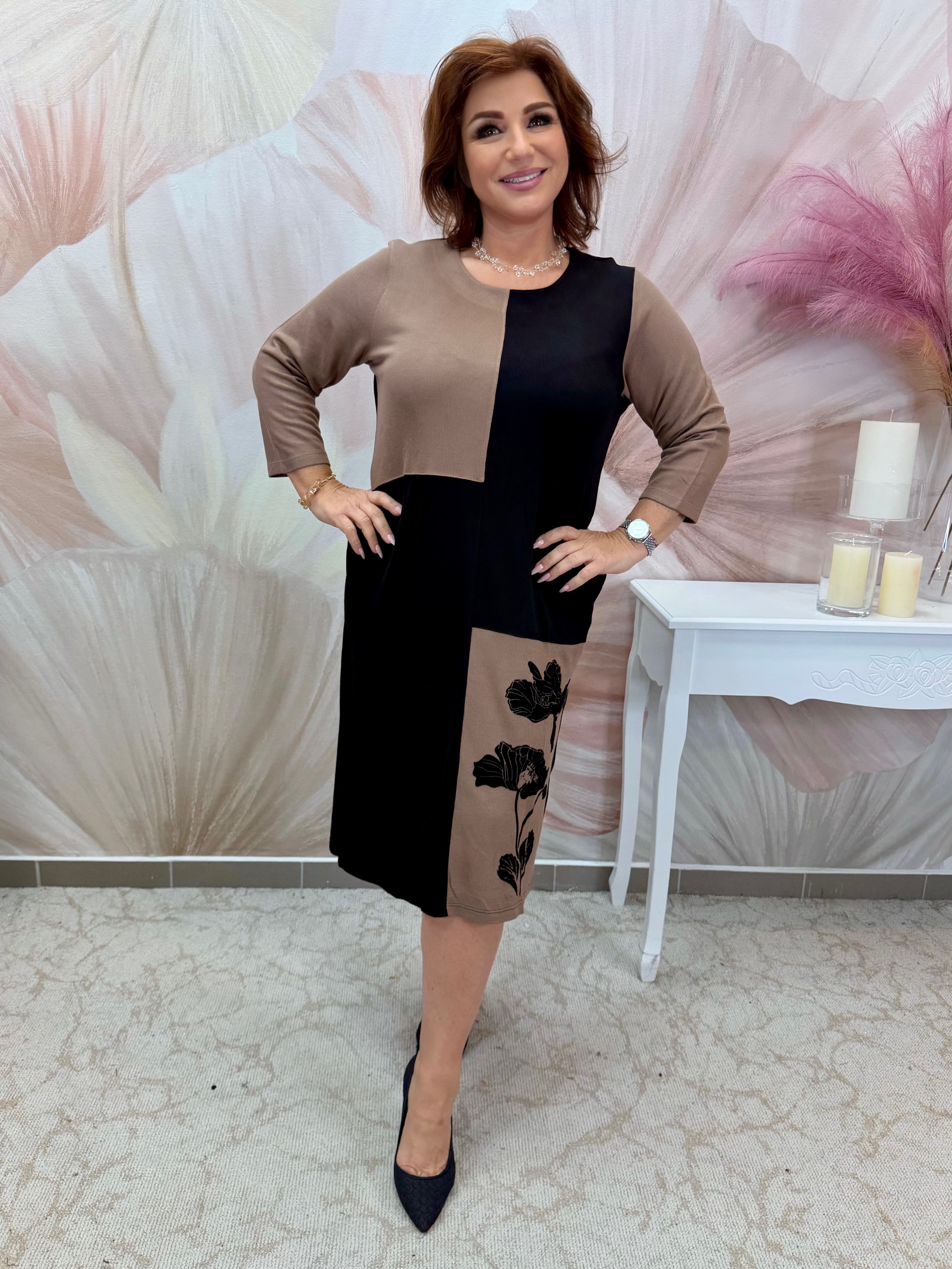 Barna-fekete vékony kötésű elasztikus pamut ruha