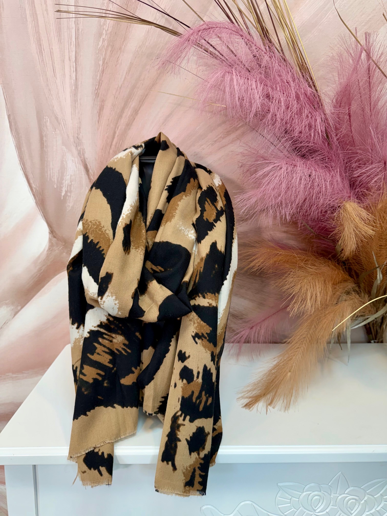 Szürke ocelotmintás hosszú sál