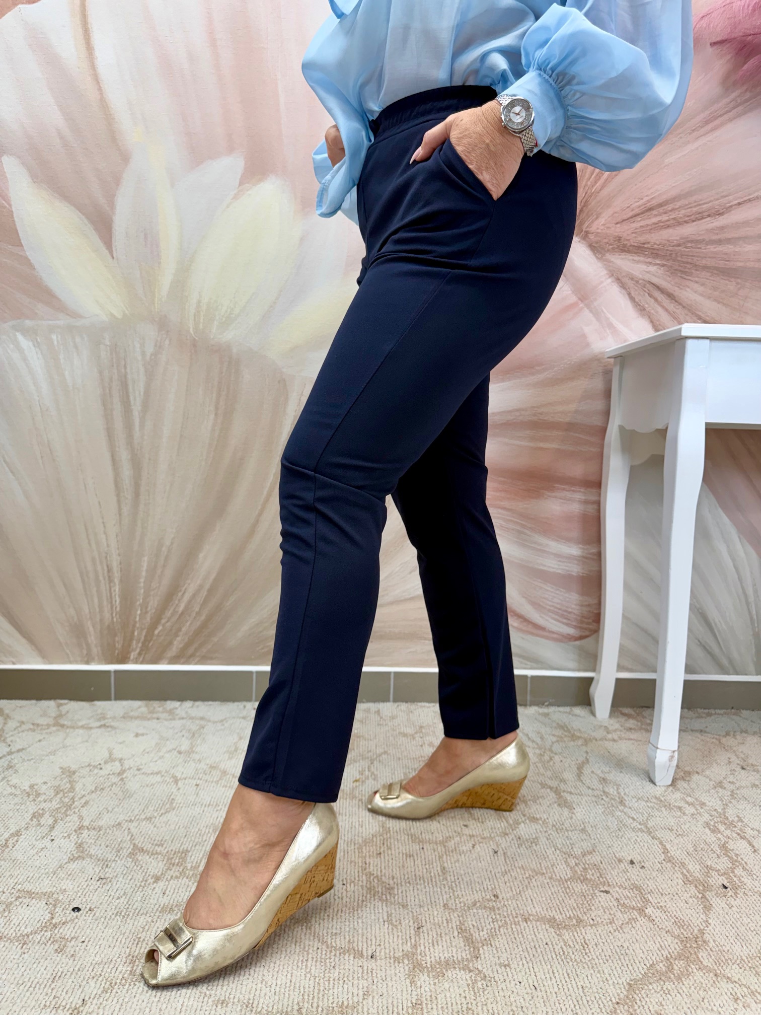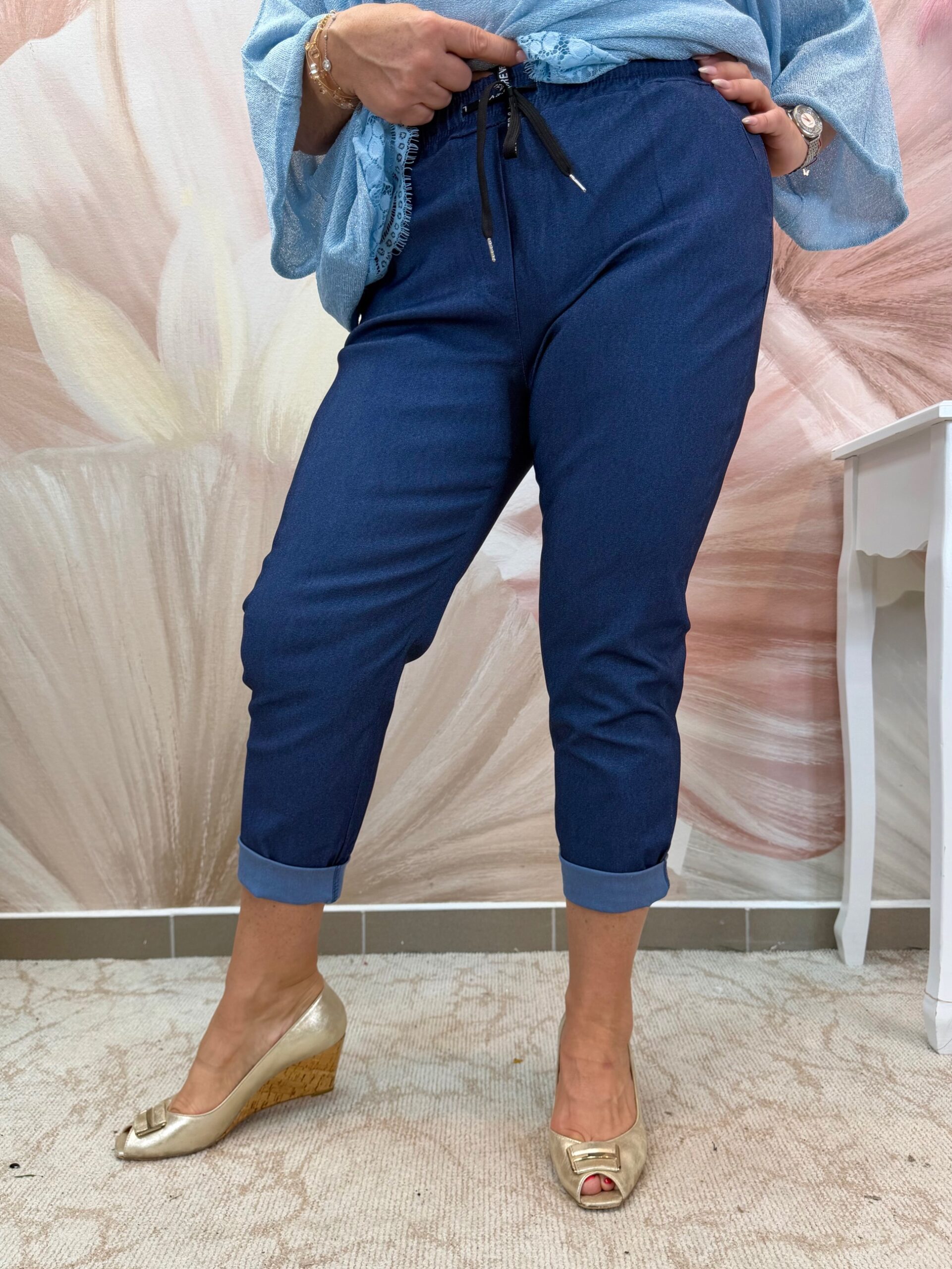 Csinos gumis derekú sötétkék nadrág