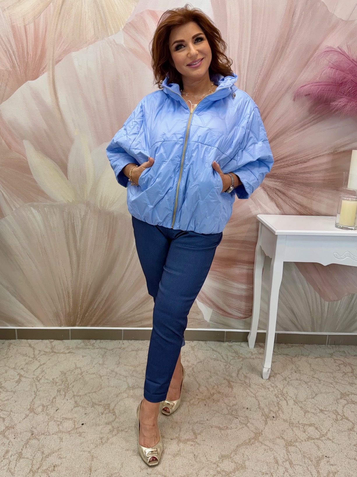 Különleges szabású világoskék tavaszi dzseki
