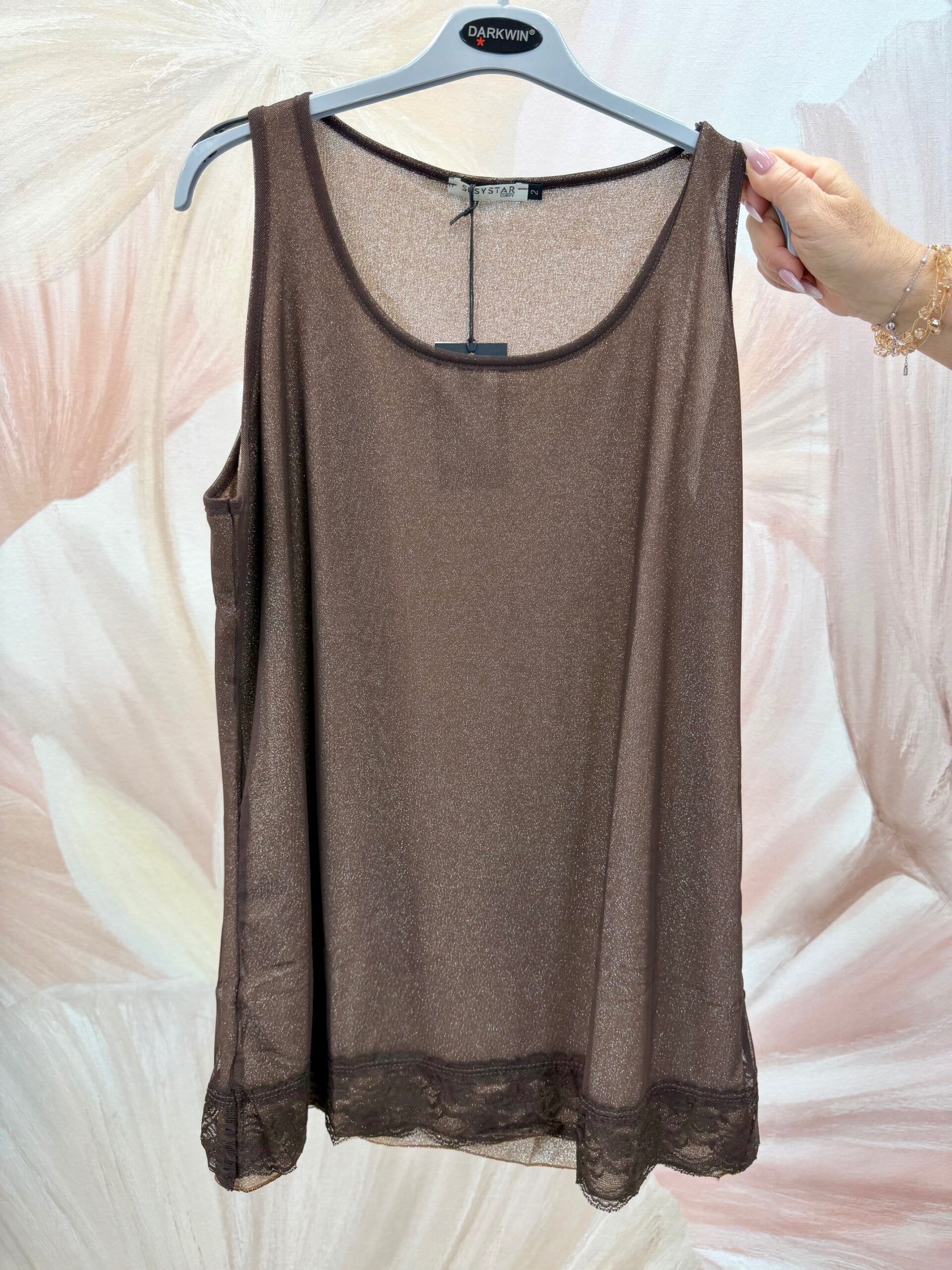 Csipkés aljú barna ujjatlan felső