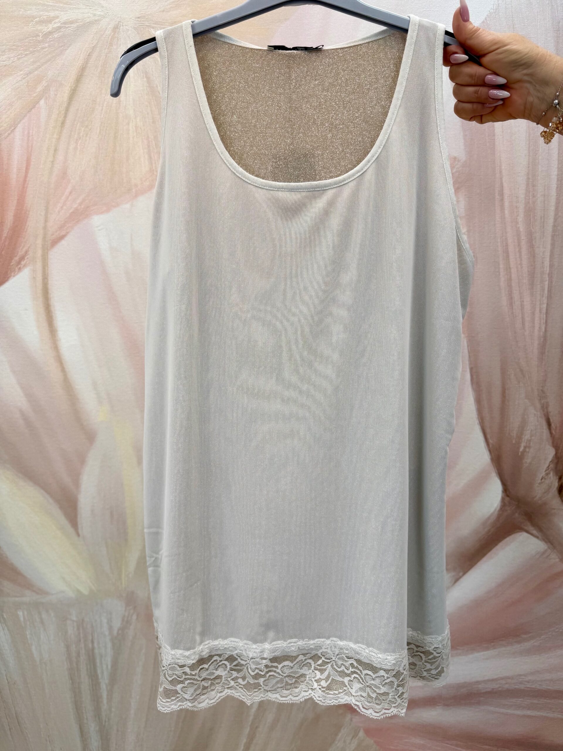 Csipkés aljú bézs ujjatlan felső