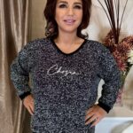Tölcsér ujjú fekete blúz ezüst strasszokkal