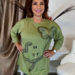 Pisztáciazöld pillangós tunika gyöngyökkel
