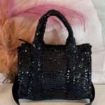Tölcsér ujjú fekete blúz ezüst strasszokkal