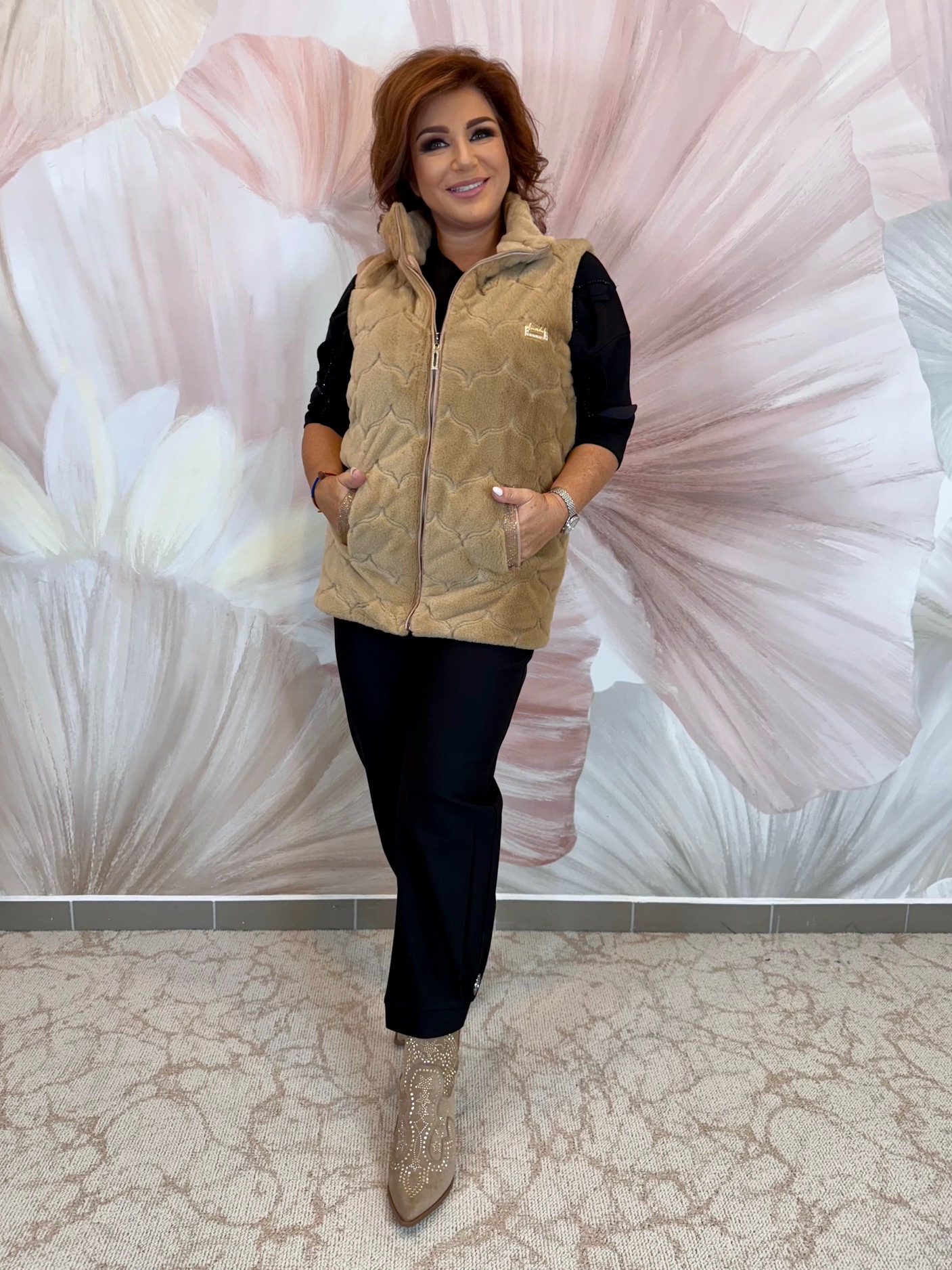 2025.09.25.Bézs szőrmés mellény arany köves zsebbel