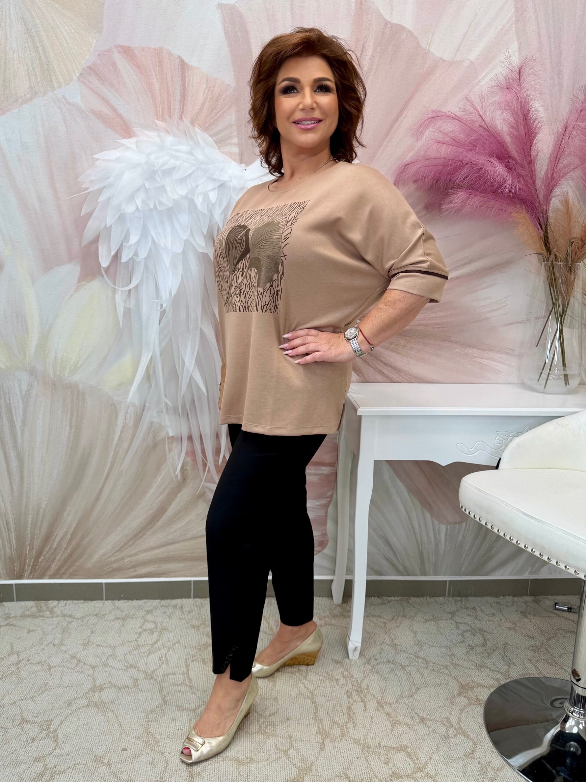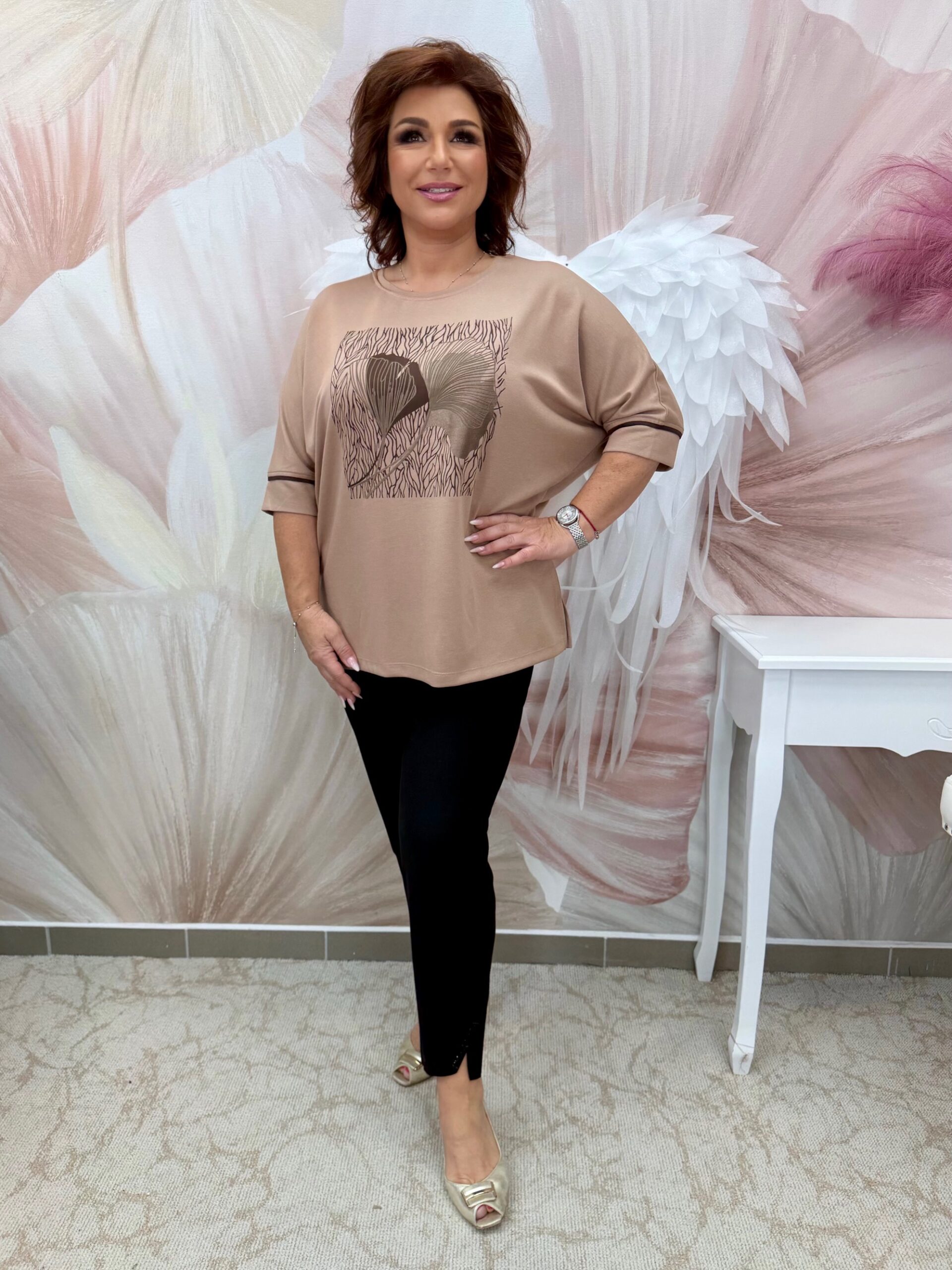 Cappucino színű csinos pamut felső
