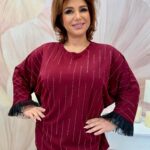 Csinos burgundi kristályköves felső fodros ujjakkal