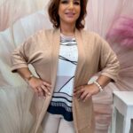 Bézs pamut kardigán apró ezüst kristályokkal