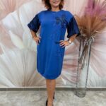 Kék pamut ruha kígyómintás ujjal, virágmintával