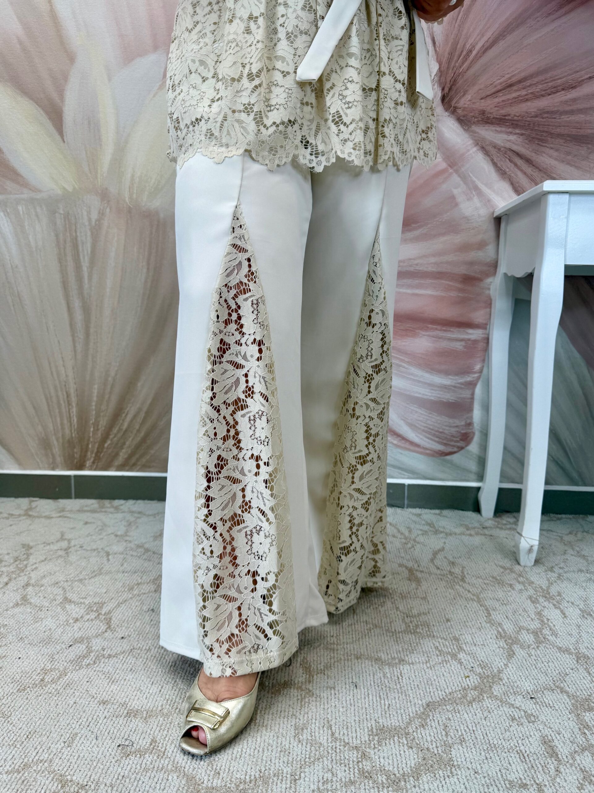 Csinos, csipkebetétes bézs nadrágkosztüm