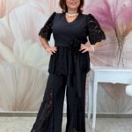Csinos, csipkebetétes fekete nadrágkosztüm