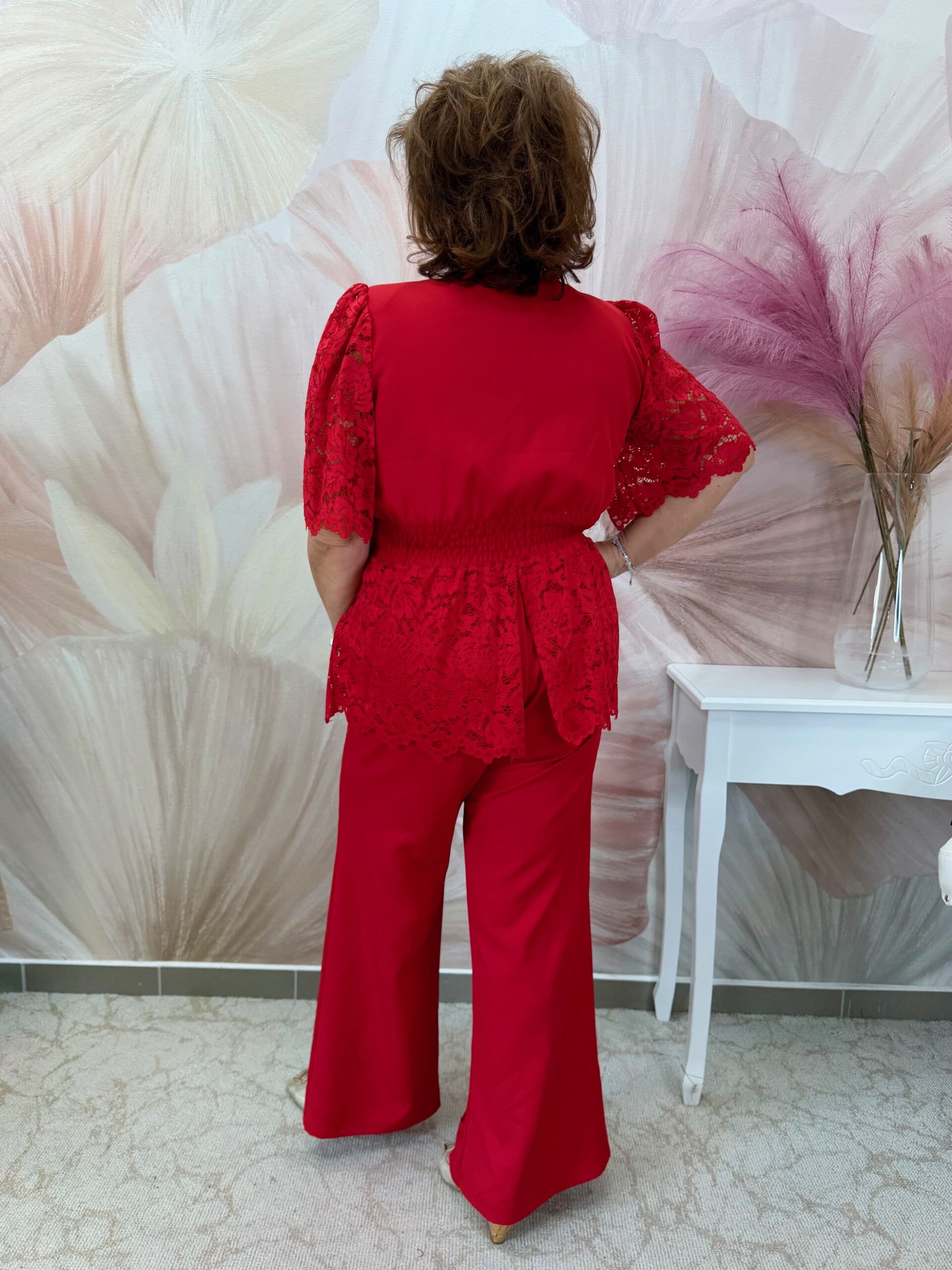 2026.04.23.Csinos, csipkebetétes piros nadrágkosztüm