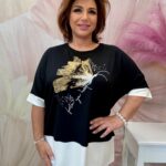 Csinos bézs felső kristályokkal, fekete mintákkal