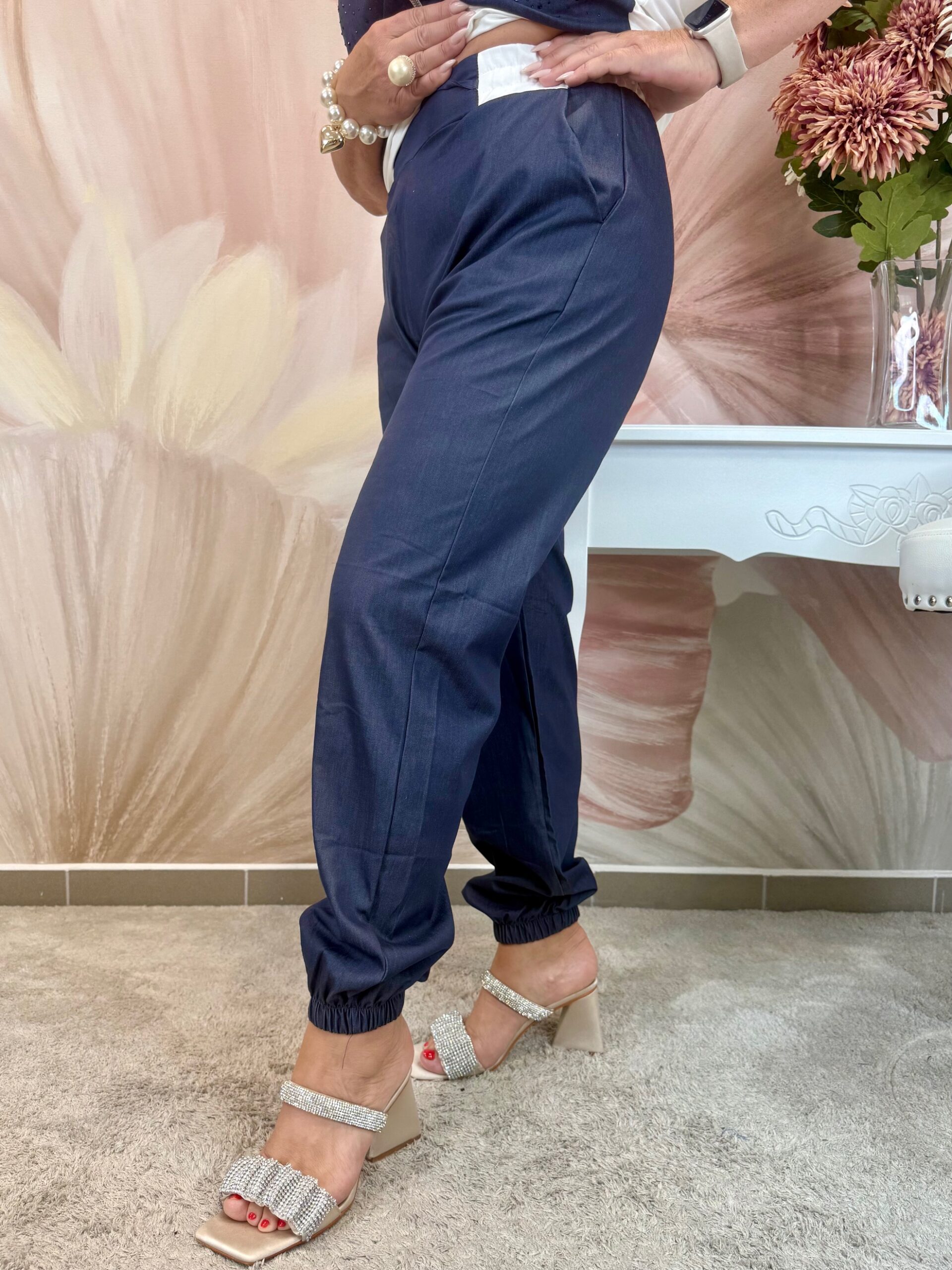 Lenge, vékony sötétkék nadrág