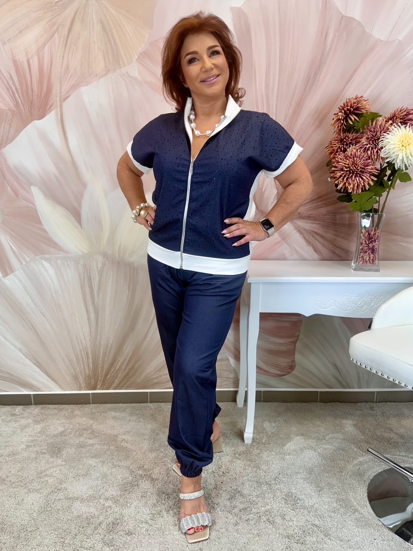 Fekete fehér szett, virágos zippes felsővel