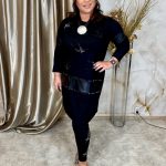 Fekete bőrbetétes szabadidő szett ezüst kristályokkal