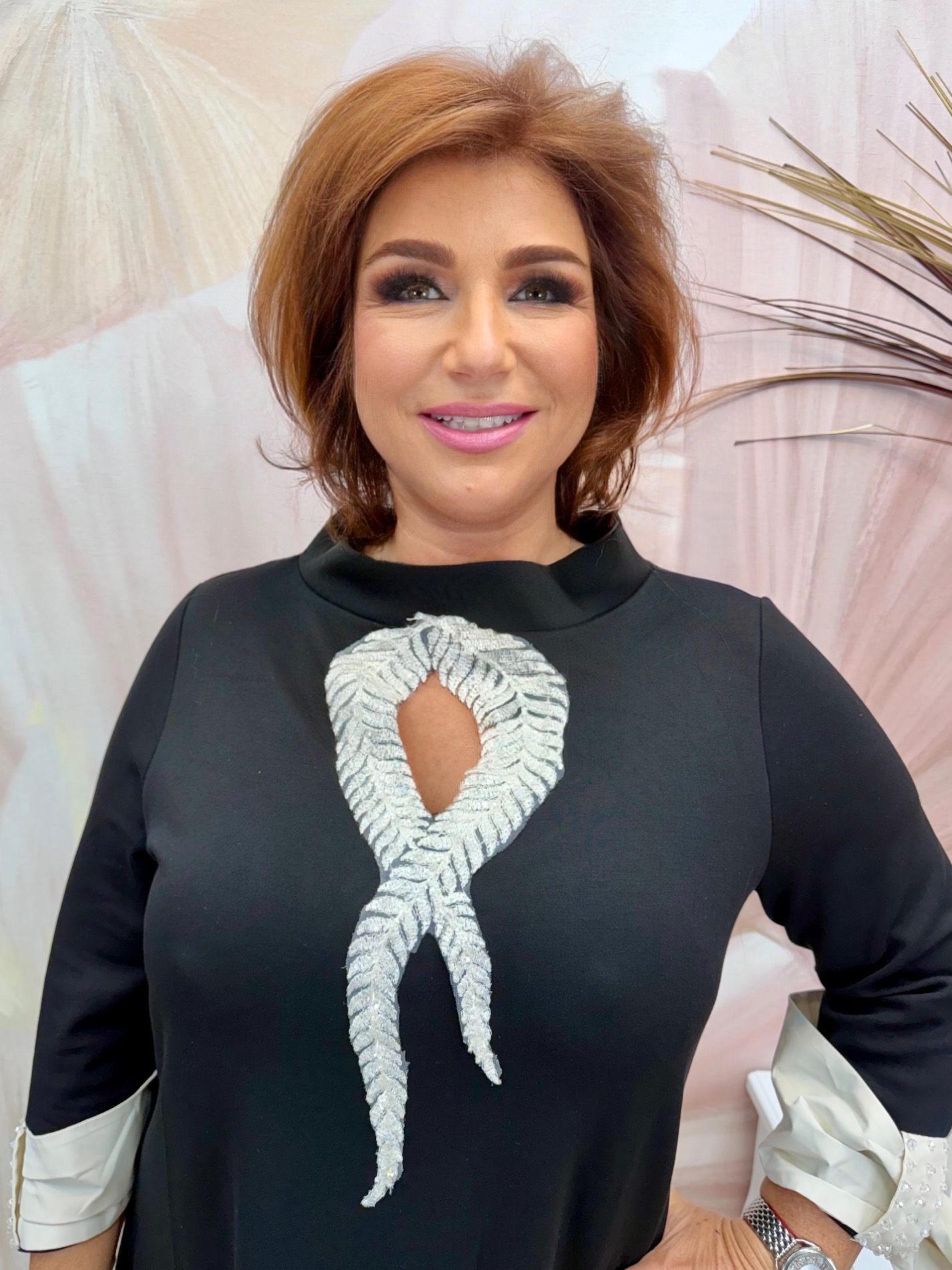 Csinos fekete alkalmi felső fehér ingujjakkal