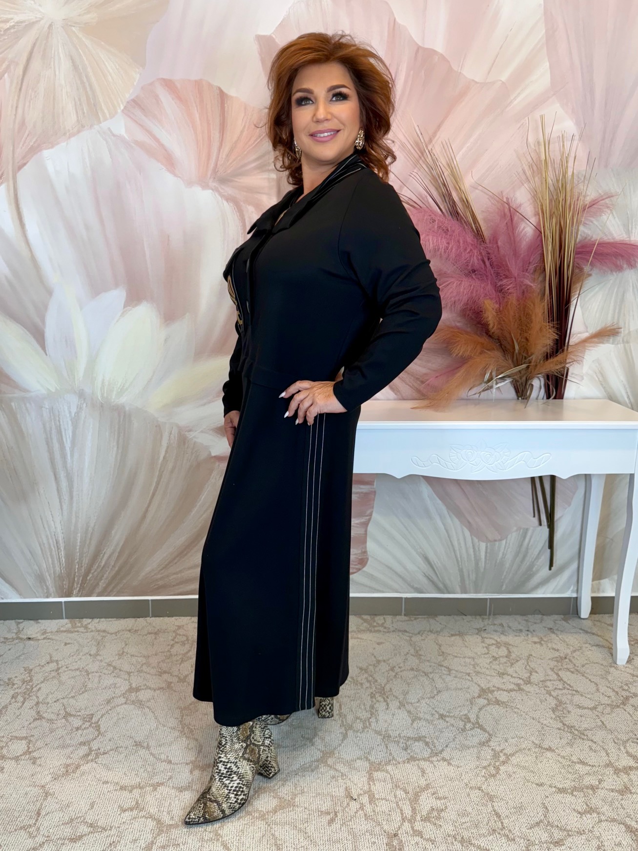 Elasztikus fekete nadrág fodros zsebbel, övvel