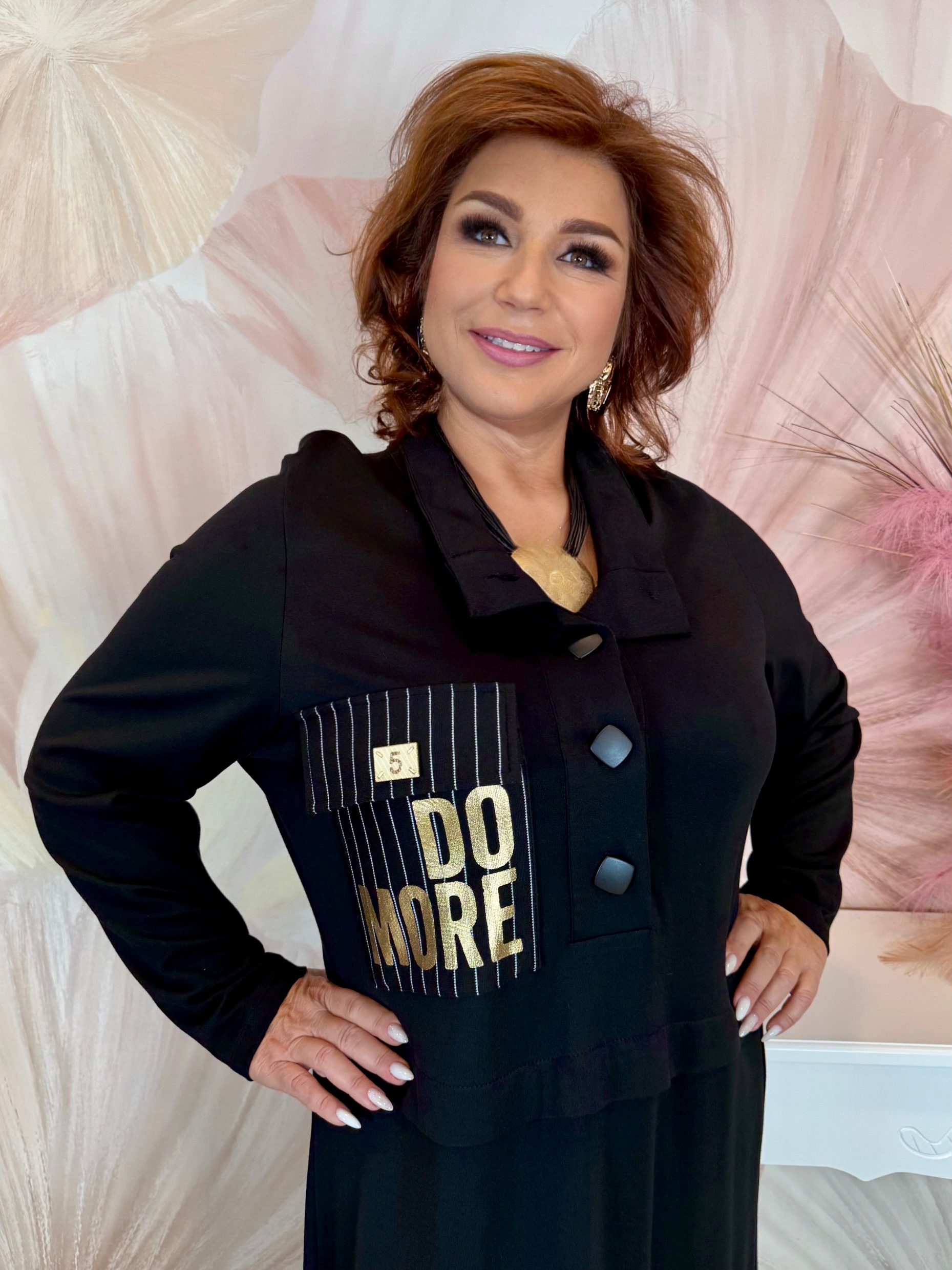 Tölcsér ujjú fekete blúz ezüst strasszokkal