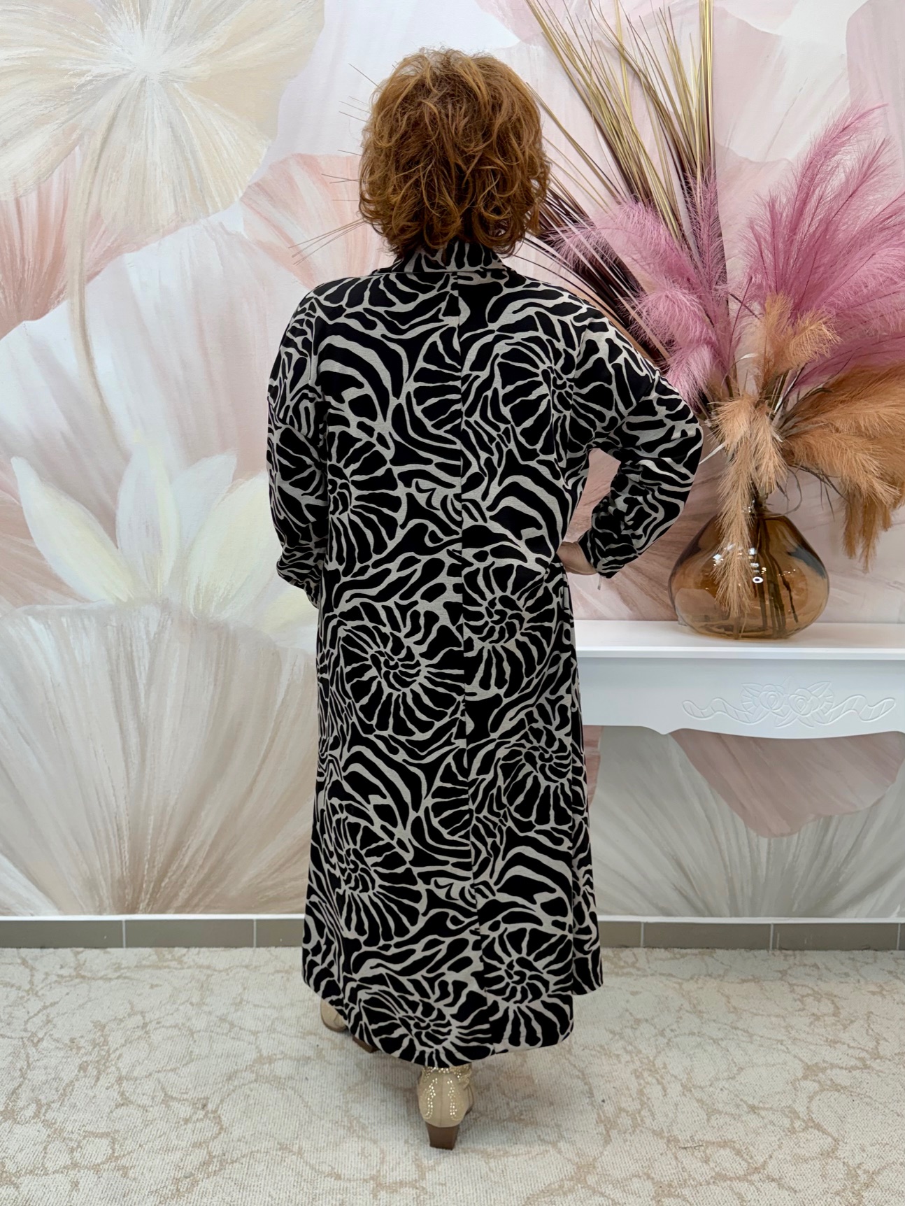 Fekete bőrbetétes ocelotos pamut ruha kristályokkal