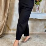 Elasztikus fekete bő szarú nadrág alján fekete kristályokkal