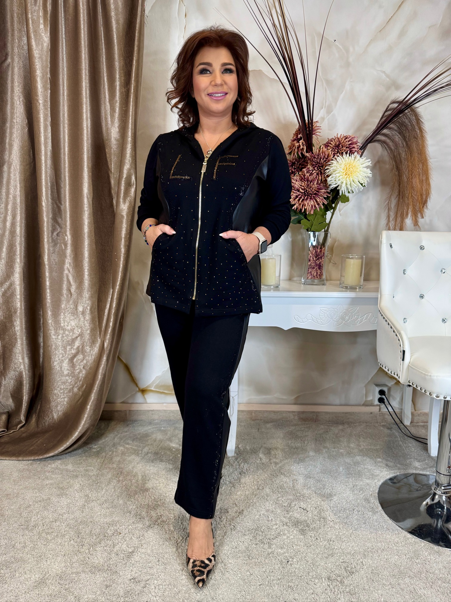 Fekete bőrbetétes szabadidő szett ezüst kristályokkal
