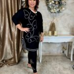 Fekete hosszított tunika/ruha bársonyos mintával