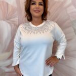 Puha fehér felső ezüst kristályokkal és strasszokkal