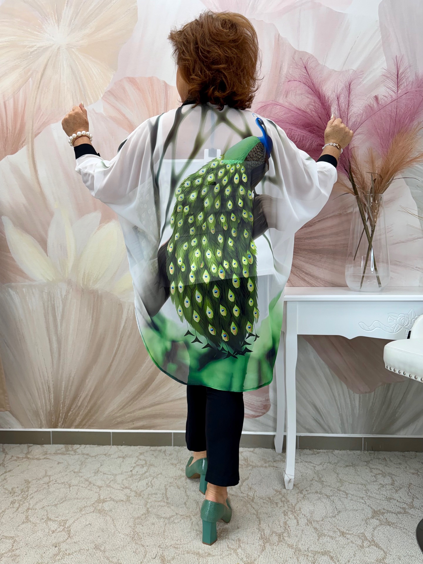 2026.04.23.Csinos gombos páva mintás muszlin tunika toppal