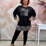 Fekete hosszított tunika ocelotmintás passzéval, kristályokkal