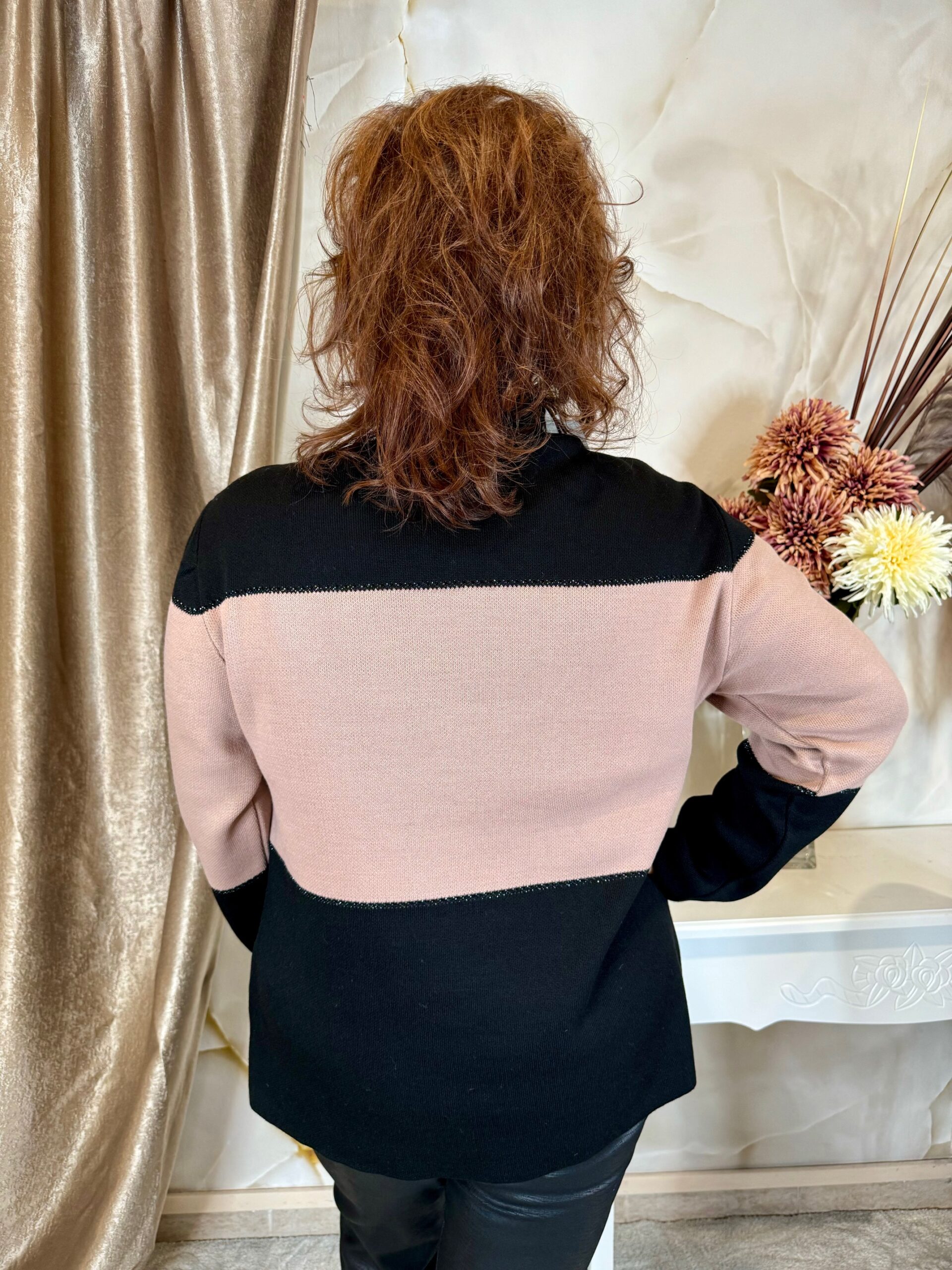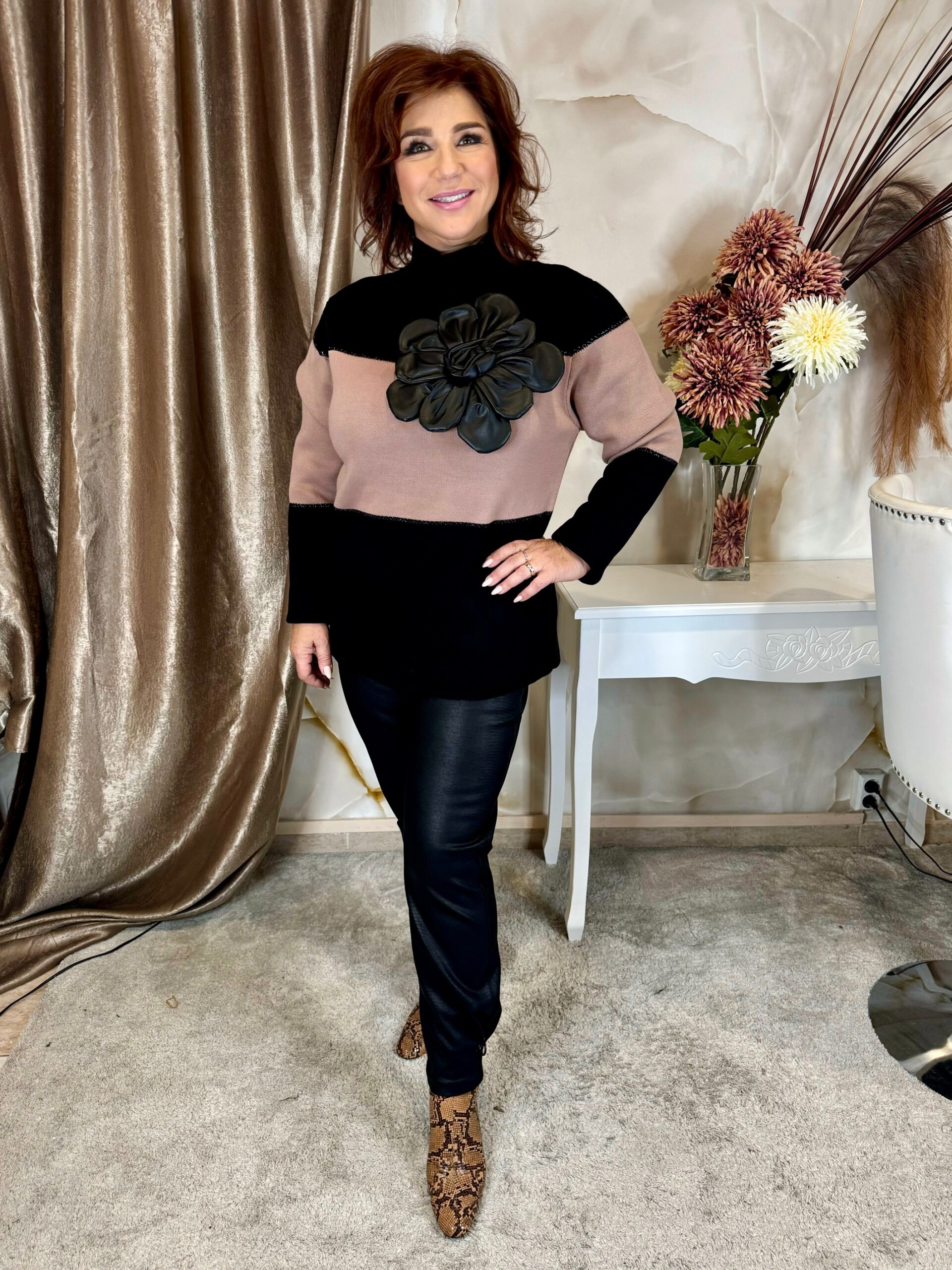 2024.11.20.Csinos kötött pulcsi bőrvirággal