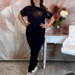 Fekete bőrbetétes szabadidő szett ezüst kristályokkal