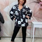 Fekete fehér szett, virágos zippes felsővel