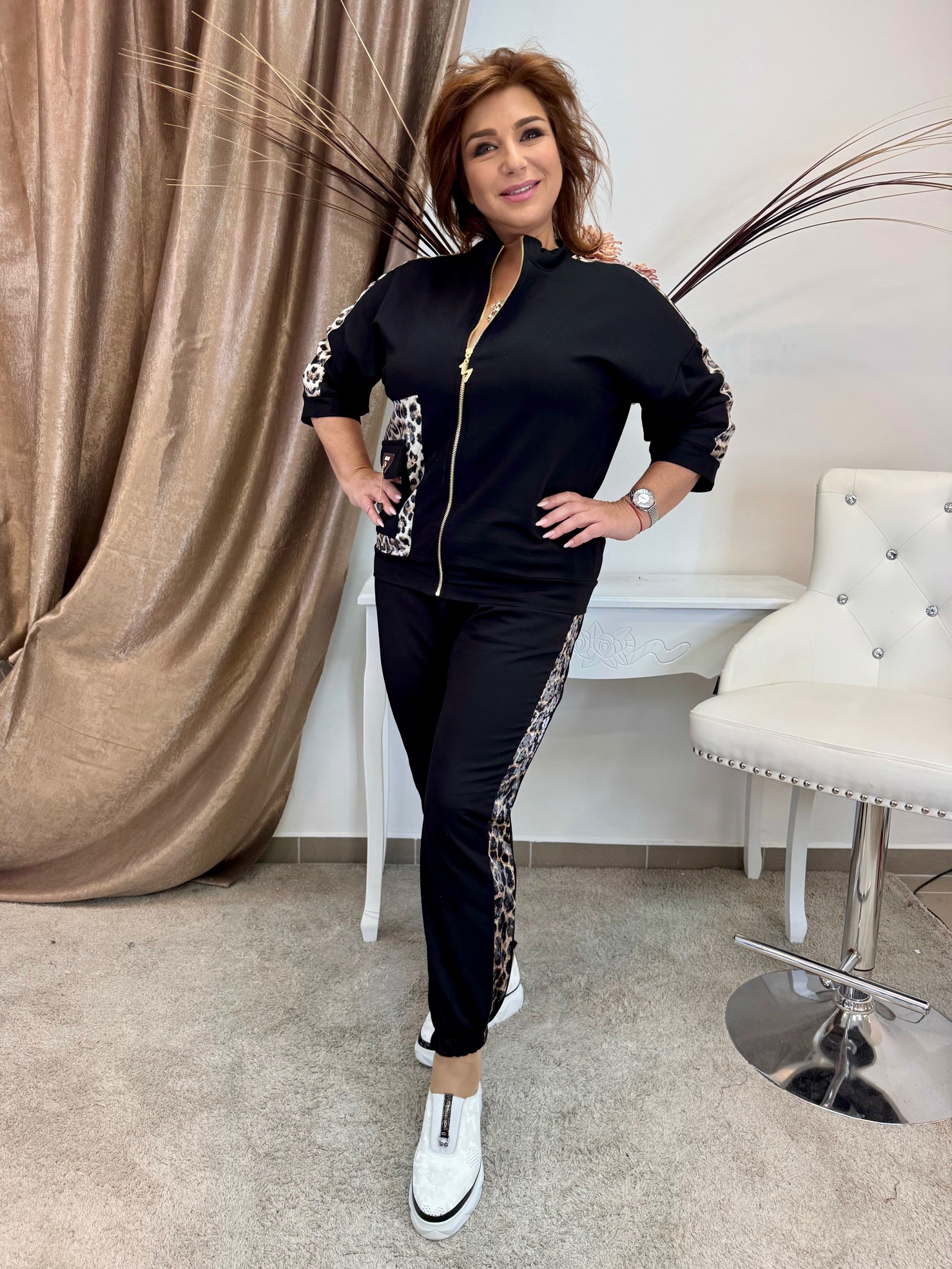 2025.03.12.Csinos fekete szabadidő szett ocelotmintával