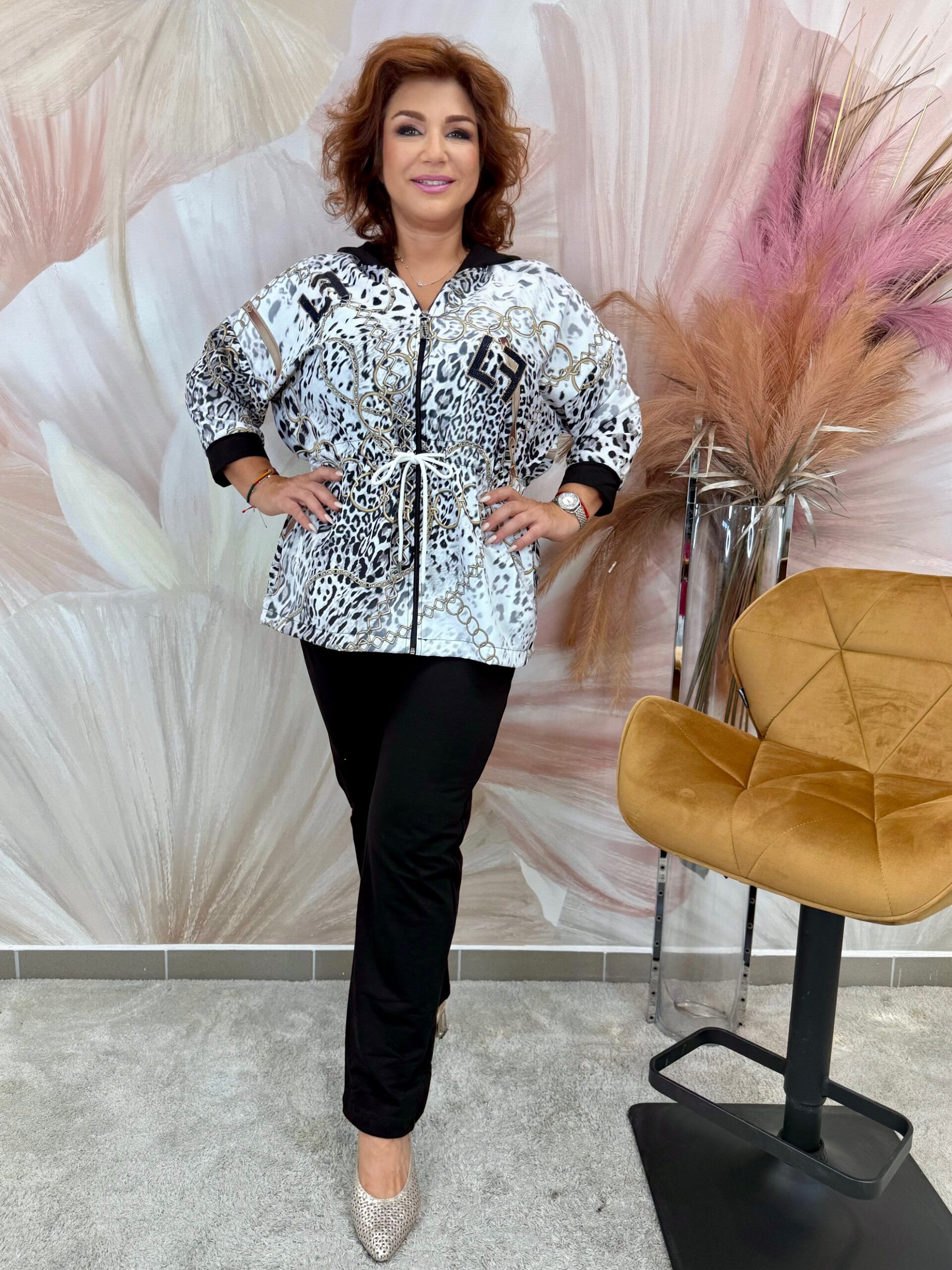 Fekete fehér szett, virágos zippes felsővel