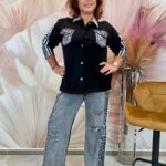 Fekete bőrbetétes szabadidő szett ezüst kristályokkal