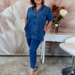 Kék farmerhatású pamut szett zippes felsővel