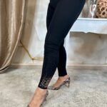 Fekete pamut leggings tüllbetéttel és patentokkal