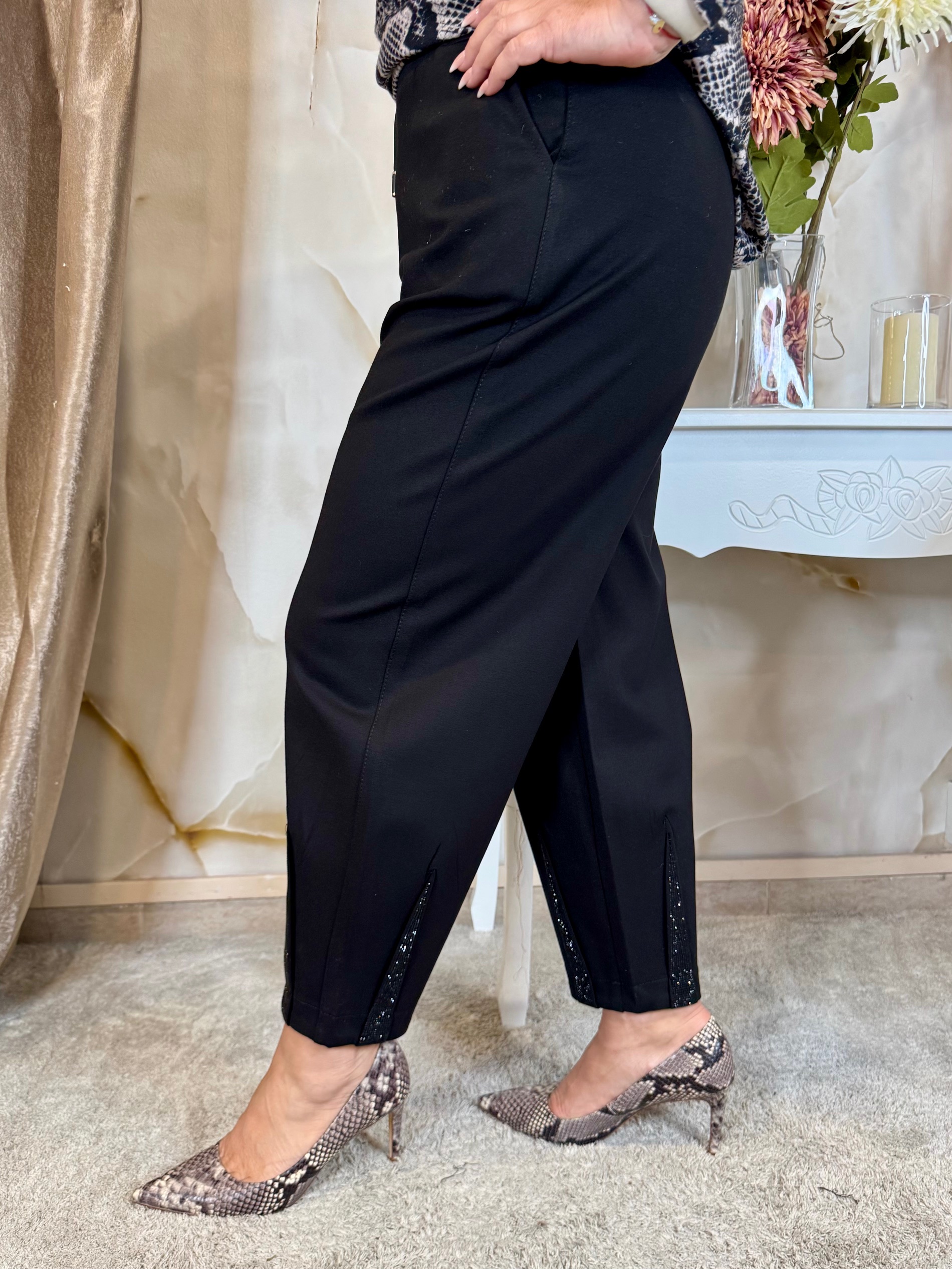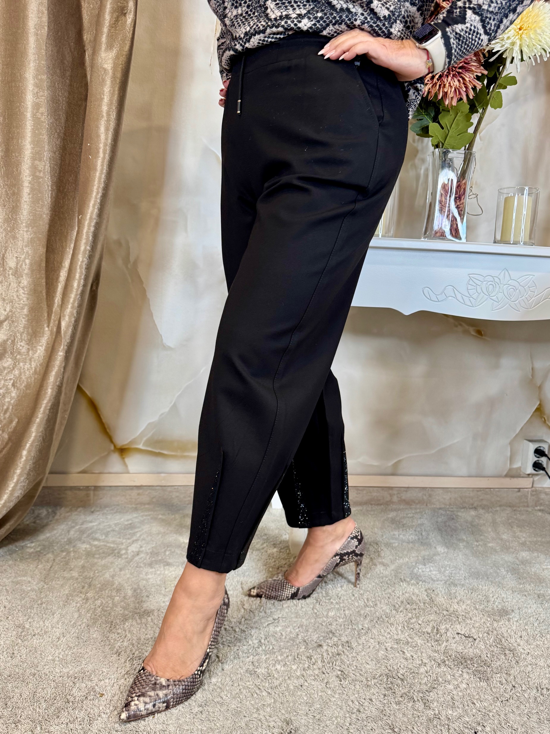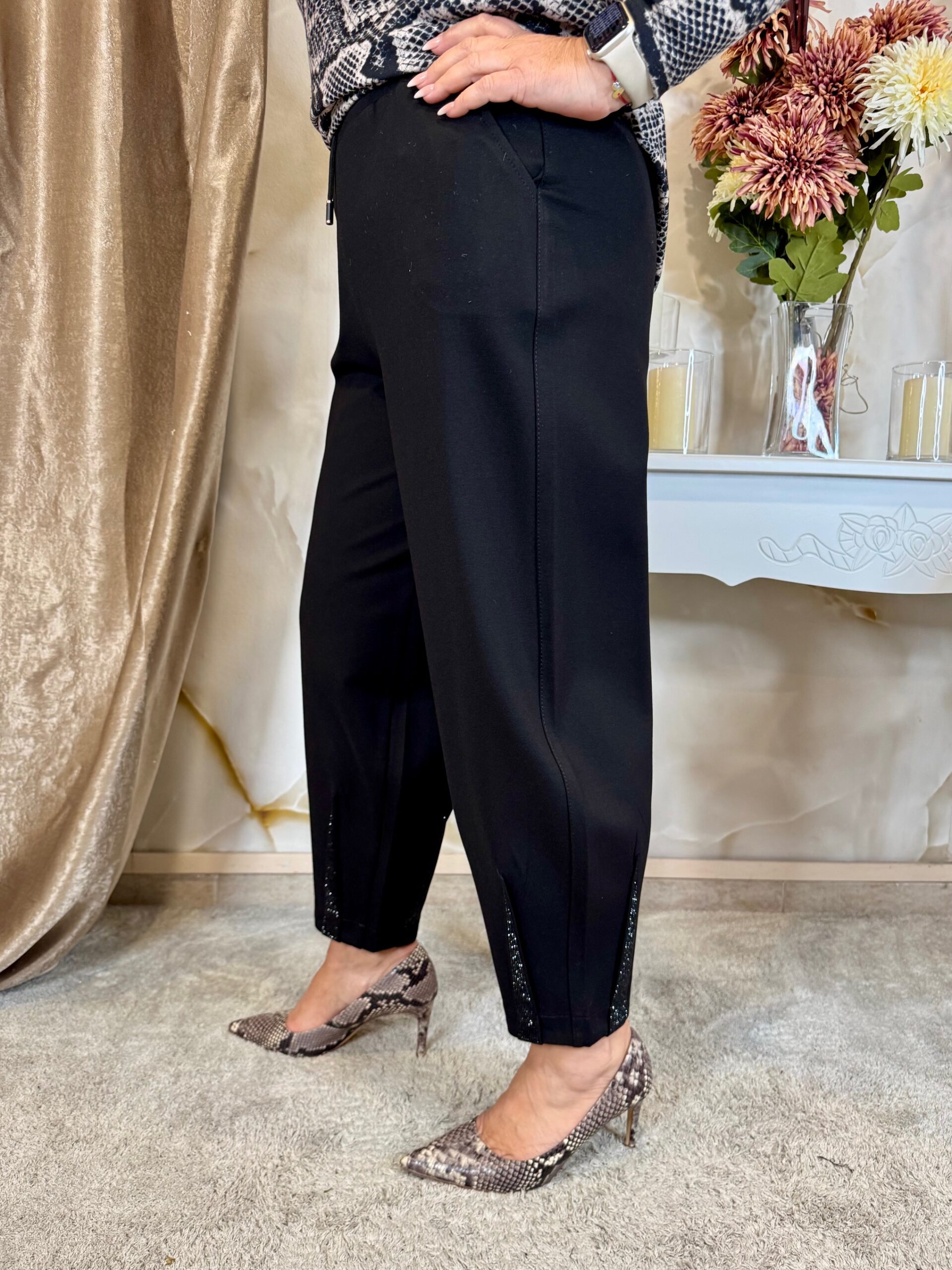 2025.01.12.Elasztikus fekete bő szarú nadrág alján fekete kristályokkal