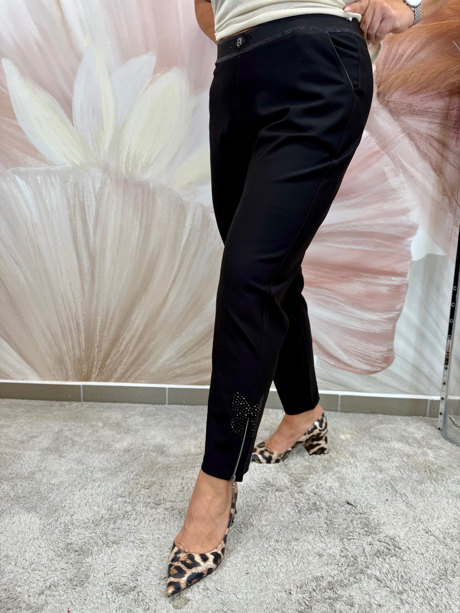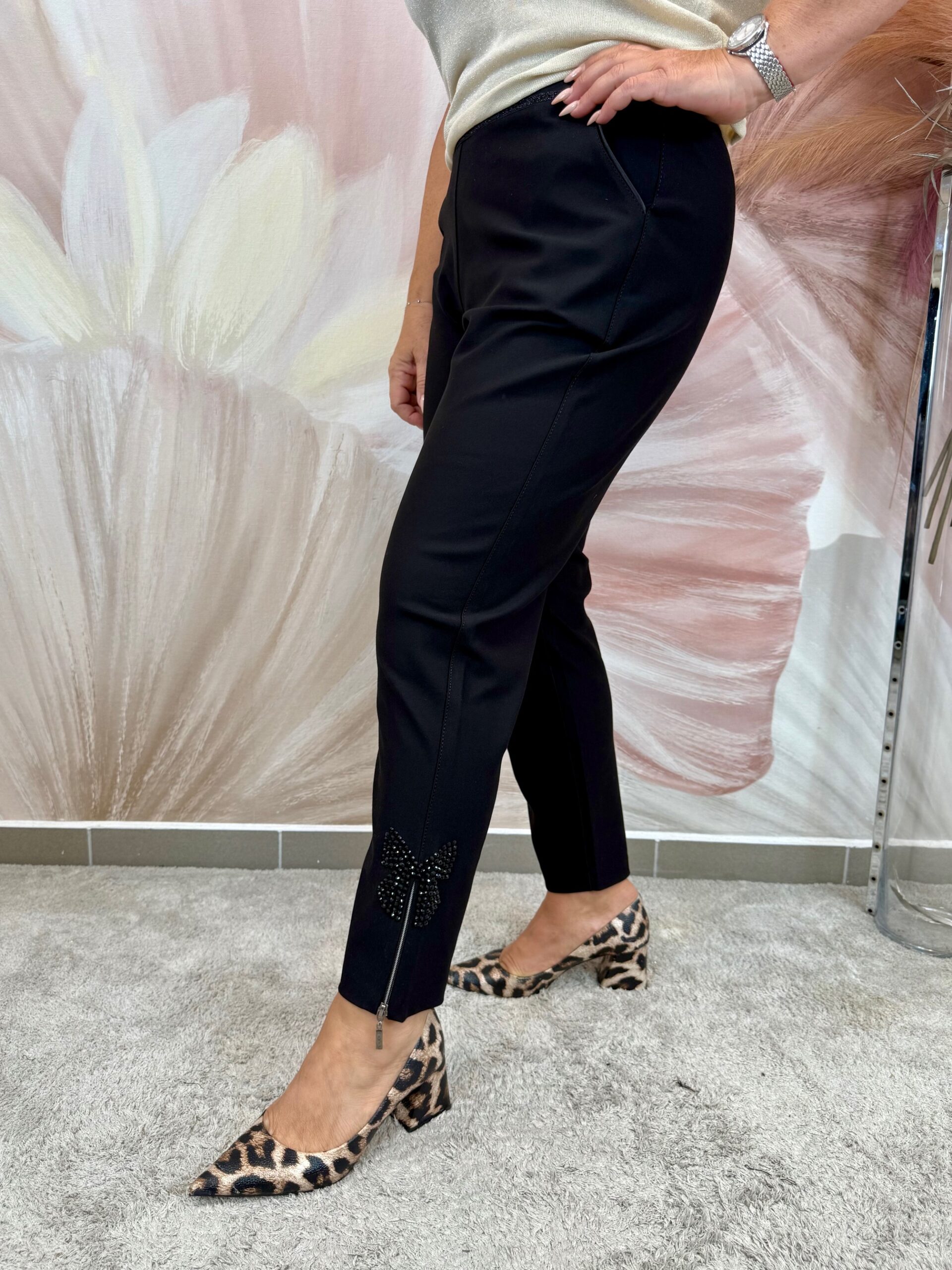 Elasztikus fekete gumis derekú nadrág bokáján masni kristályokkal és zippel