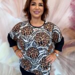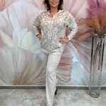 Bézs pamut szett ocelotmintás arany kristályokkal