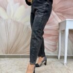 Csinos sötétszürke farmernadrág bokáján ezüst masnival