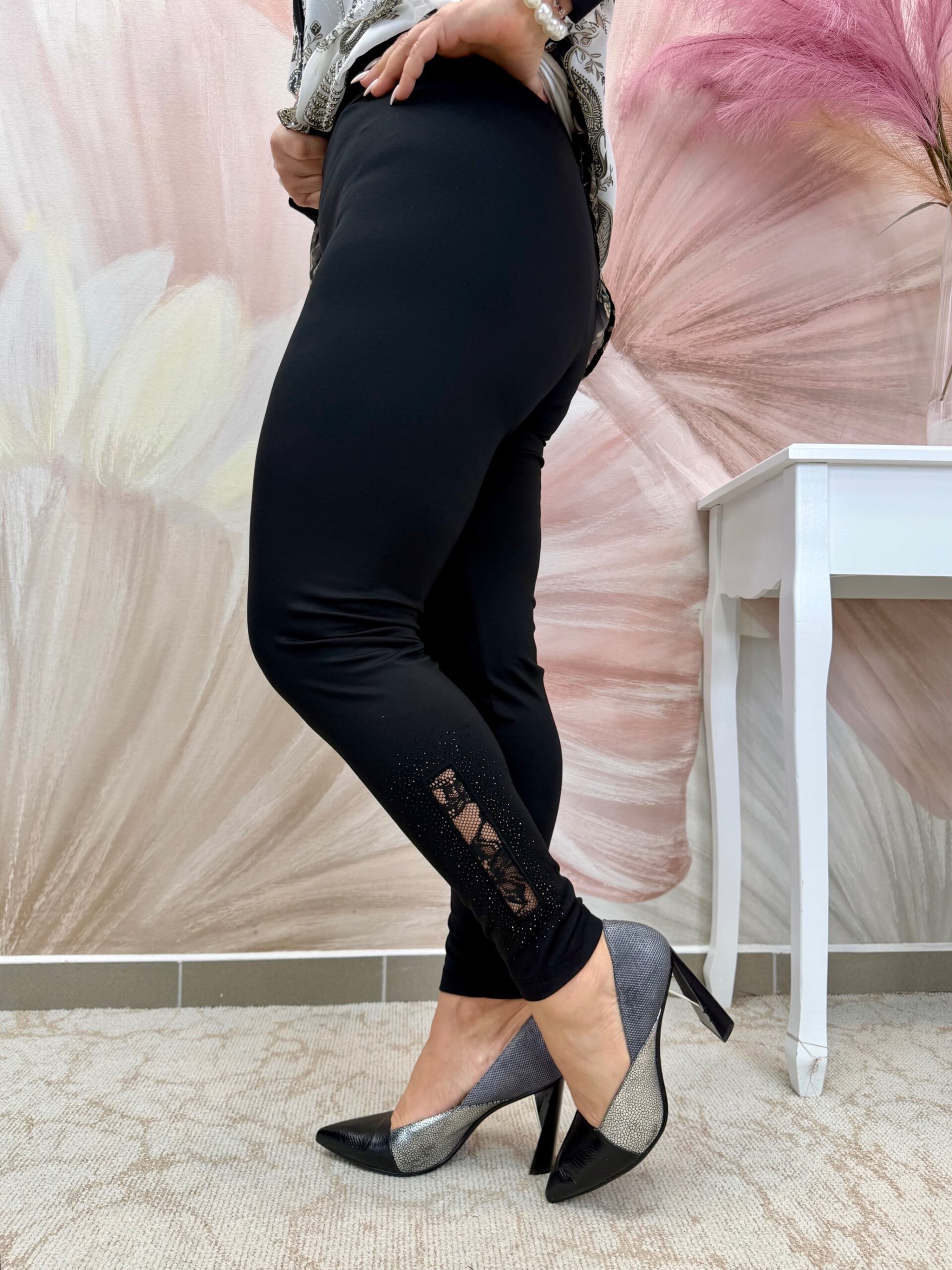 2026.03.29.Elasztikus fekete leggings csipkebetéttel