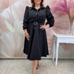 Csinos galléros fekete ruha virágmintával