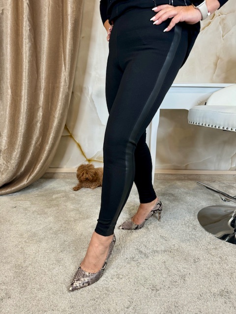 2024.09.15.Vastag elasztikus pamut leggings oldalán bőrcsíkkal