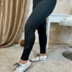 Fényes leggings szárán kristályokkal és gyöngyökkel